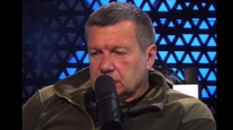Топ-пропагандист РФ Володимир Соловйов з’явився в ефірі з синцями на обличчі із засмученим виглядом через успіхи контрнаступів Збройних сил України.
