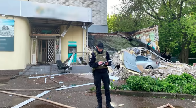 Деталі: 6 травня близько четвертої ранку до поліції надійшло повідомлення про вибух та подальше займання приміщення банку в центрі Чернігова. Вибухом було пошкоджено будівлю та припарковані поруч авто. Люди не постраждали.